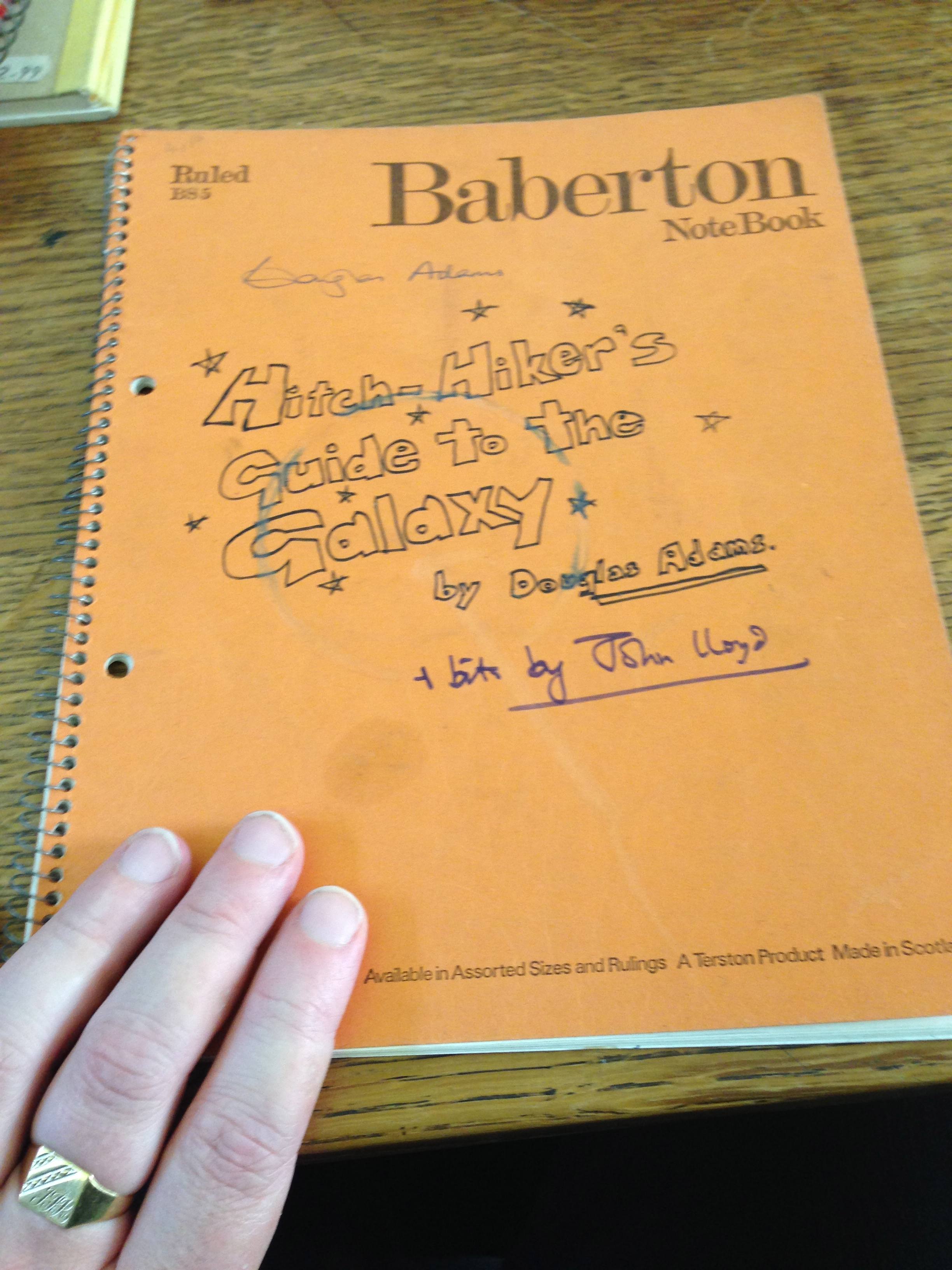 This week sees the publication of the first significant and official Douglas Adams-related book in precisely nine years, since The Frood enjoyed its oh-so-brief time in the sun – up on stage at the Cheltenham Literary Festival with Clive Anderson, Douglas’ brother James Thrift and the ceaselessly missed Terry Jones, plus giving my Arthur Dent in completely brain-boggling, totally ‘unseen’ extracts from The Hitchhiker’s Guide to the Galaxy, exclusively gleaned from the Adams Archive in Cambridge.