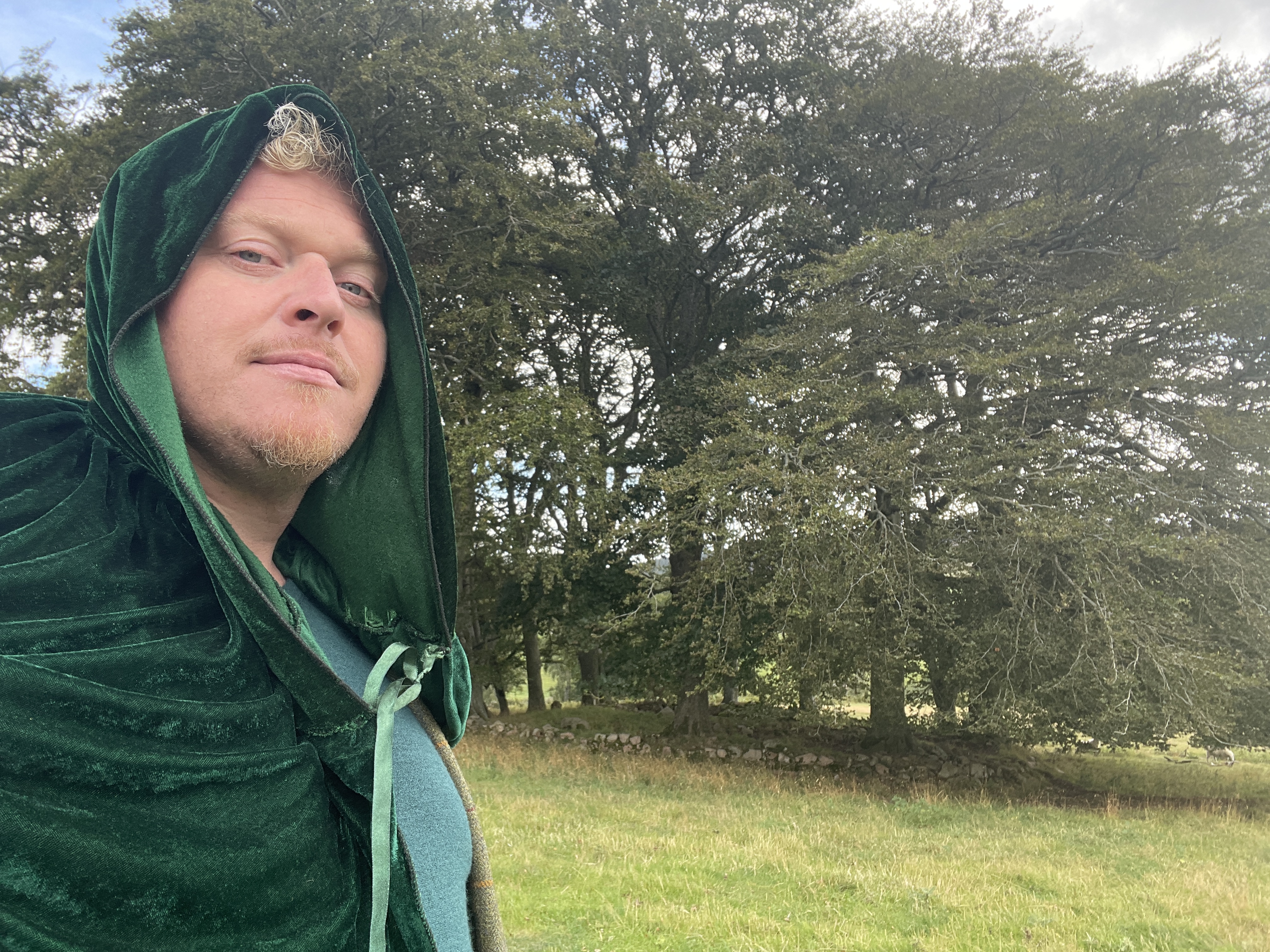 As well as already including my own retelling of the twisted history of 11th century King of Alba Macbethad mac Findláech in Tales of Britain, as ‘Macbeth and the Witches’, my obsession with Shakespeare’s play goes back even beyond the time I played a wounded soldier, servant and Banquo descendant in the 1991 Ludlow Festival production, with David Rintoul and Haydn Gwynne. Although my favourite play may be King Lear, I describe Macbeth as my favourite poem, because it has that urgency, the rhythm, it’s so relentless, so short by Shakespeare’s standards… and is so filled with rhyme, to boot. So spending a week or two literally walking in the late King’s footsteps was worth every moment – even spending two nights in what was essentially a builder’s hut in Inverness.