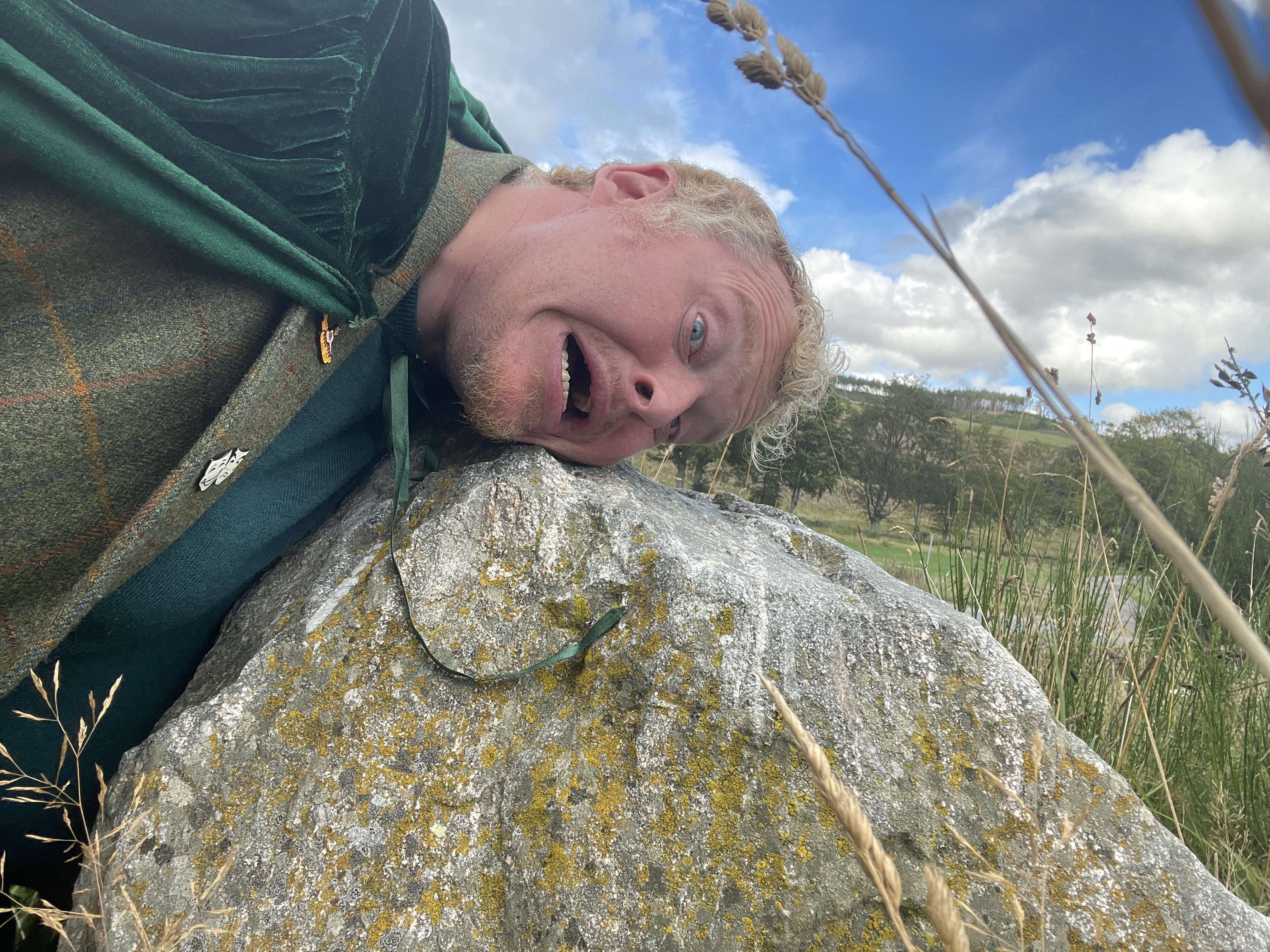 Macbeth’s Cairn, however, was a lot easier to find – and it involved the kindness of strangers. We were worried about trespassing at Howeburn Farm, but the people who lived there were exceedingly kind, and allowed us to go up into their higher field to see the spot where Macbeth lay.